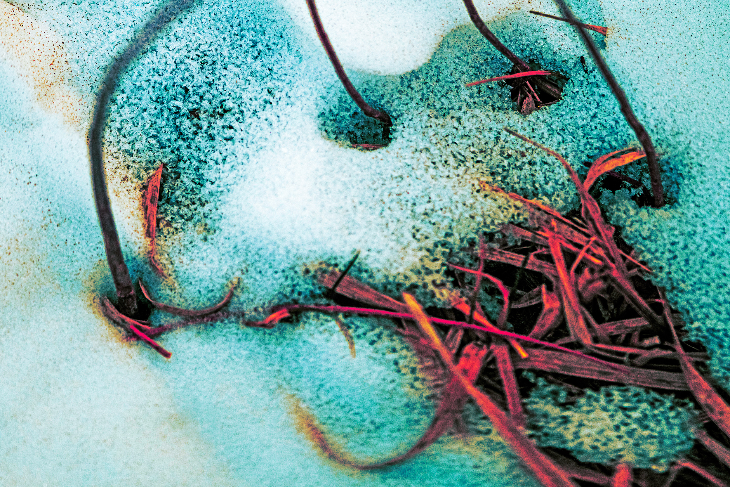 Laramie Greenbelt Trail screaming twisted grass face piercing through snow macro shot captured outdoors on January 30th 2026 at 8:01 AM during a cold, cloudy and windy winter morning by Laramie Wyoming photographer Sean Michael Datz using a Nikon D850 camera with Sigma TC-2001 2x Teleconverter and Sigma 105mm macro lens at a focal length distance of 210mm.