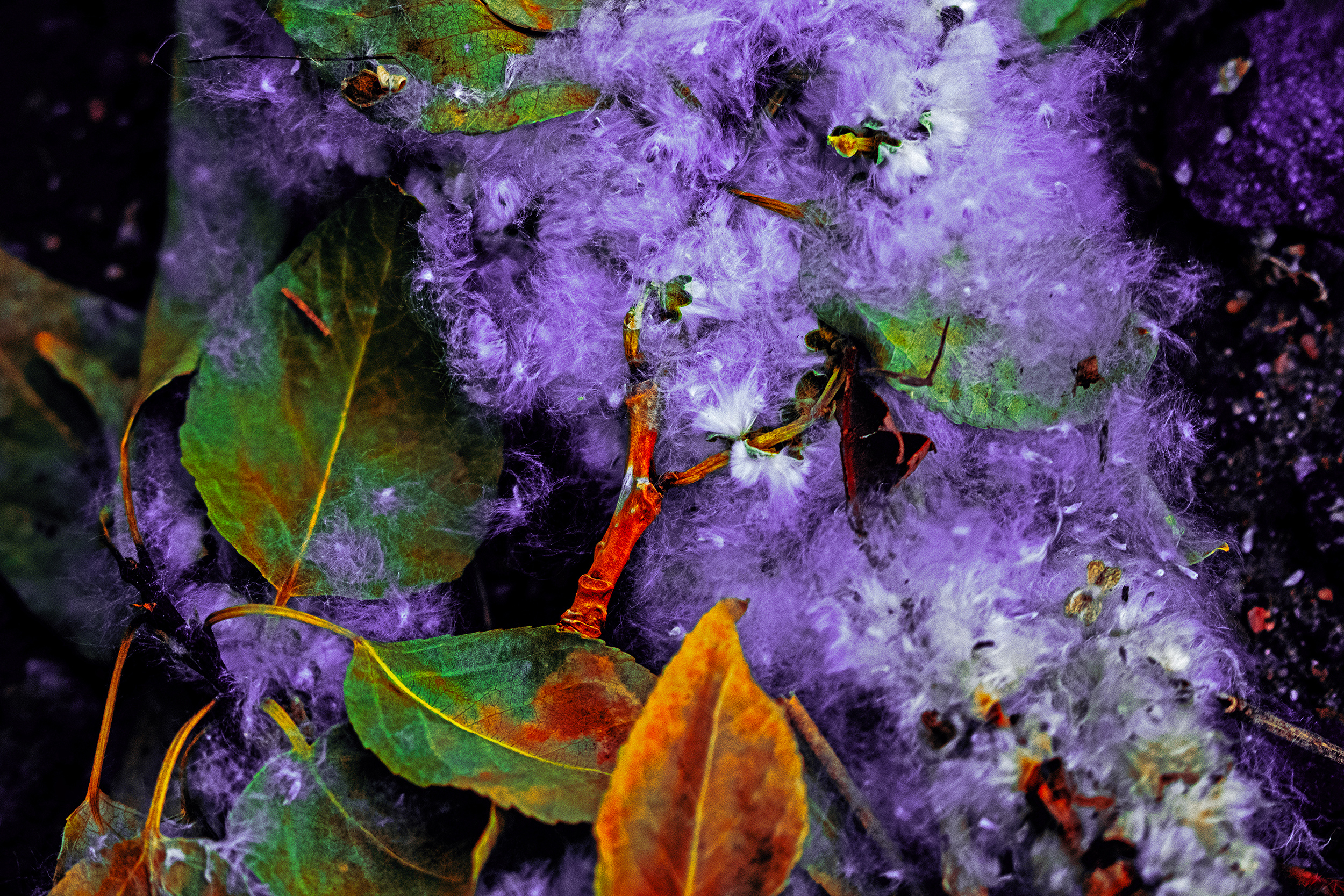Laramie Greenbelt Trail smiling cotton stick face among fallen leaves macro shot captured outdoors on June 28th 2024 at 7:13 AM during a warm, cloudy and windy summer morning by Laramie Wyoming photographer Sean Michael Datz using a Nikon D850 camera with Sigma TC-2001 2x Teleconverter and Sigma 105mm macro lens at a focal length distance of 210mm.