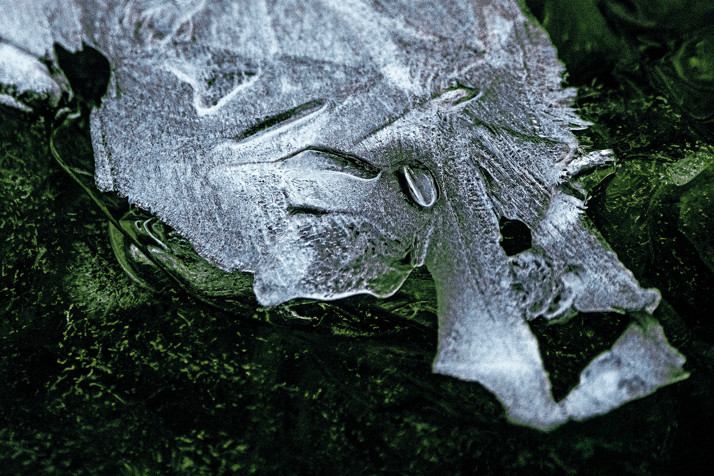 Laramie Greenbelt Trail bulging icy eyed skull head frozen atop river telephoto shot captured outdoors on January 18th 2026 at 8:44 AM during a cold, cloudy and windy winter morning by Laramie Wyoming photographer Sean Michael Datz using a Nikon D850 camera with Sigma TC-2001 2x Teleconverter and Sigma 150-600mm telephoto lens at a focal length distance of 1050mm.