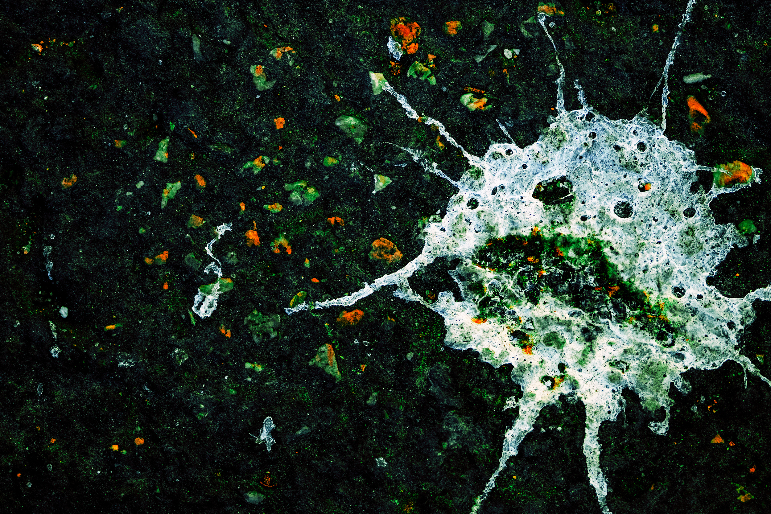 Laramie Greenbelt Trail distressed bird excrement face splattered among pavement macro shot captured outdoors on November 24th 2025 at 8:18 AM during a cold, cloudy and windy autumn morning by Laramie Wyoming photographer Sean Michael Datz using a Nikon D850 camera with Sigma TC-2001 2x Teleconverter and Sigma 105mm macro lens at a focal length distance of 210mm.