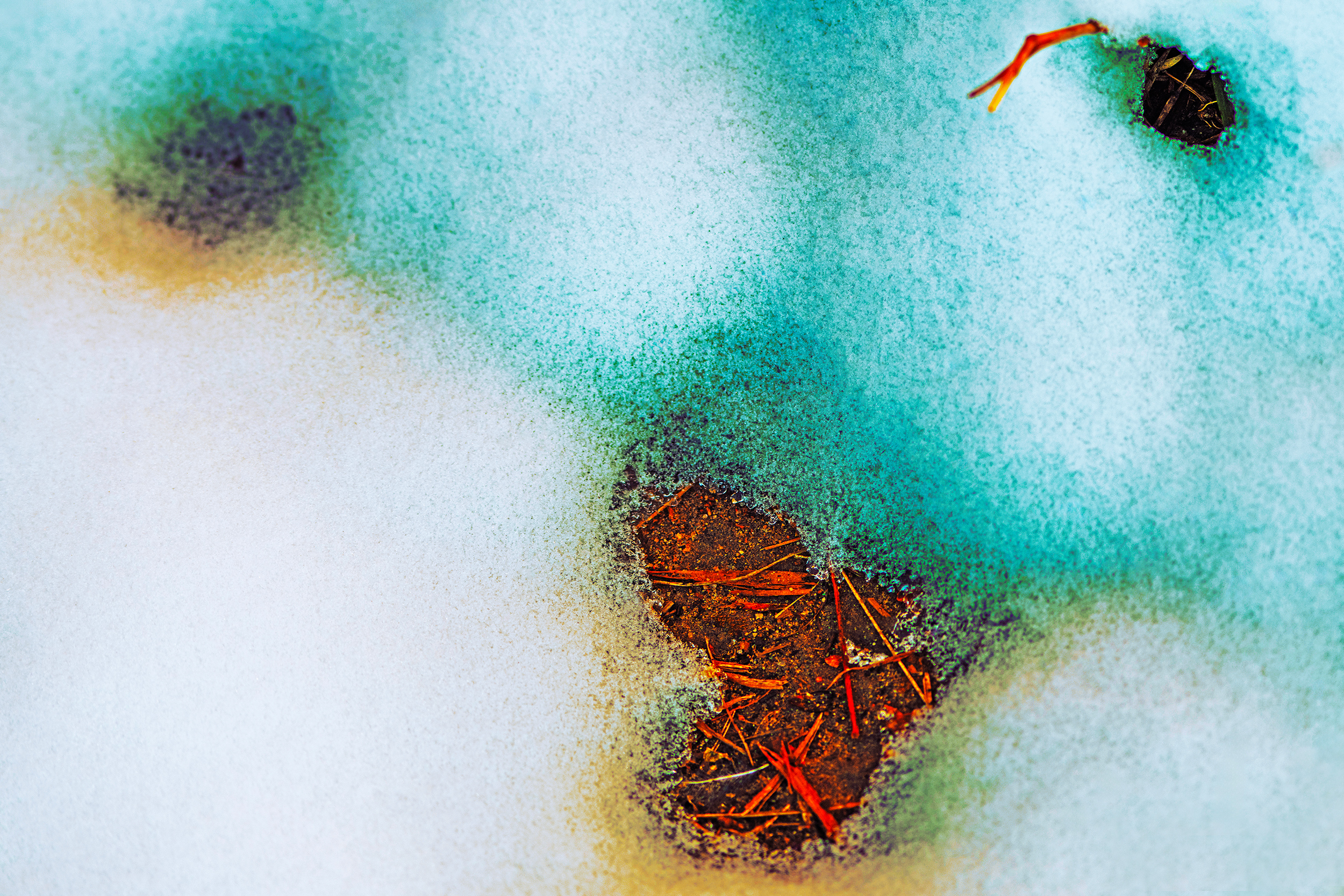 Laramie Greenbelt Trail joyful soil face appears beneath melting snow macro shot captured outdoors on October 13th 2023 at 1:43 PM during a cold, cloudy and windy autumn afternoon by Laramie Wyoming photographer Sean Michael Datz using a Nikon D850 camera with Sigma TC-2001 2x Teleconverter and Sigma 105mm macro lens at a focal length distance of 210mm.