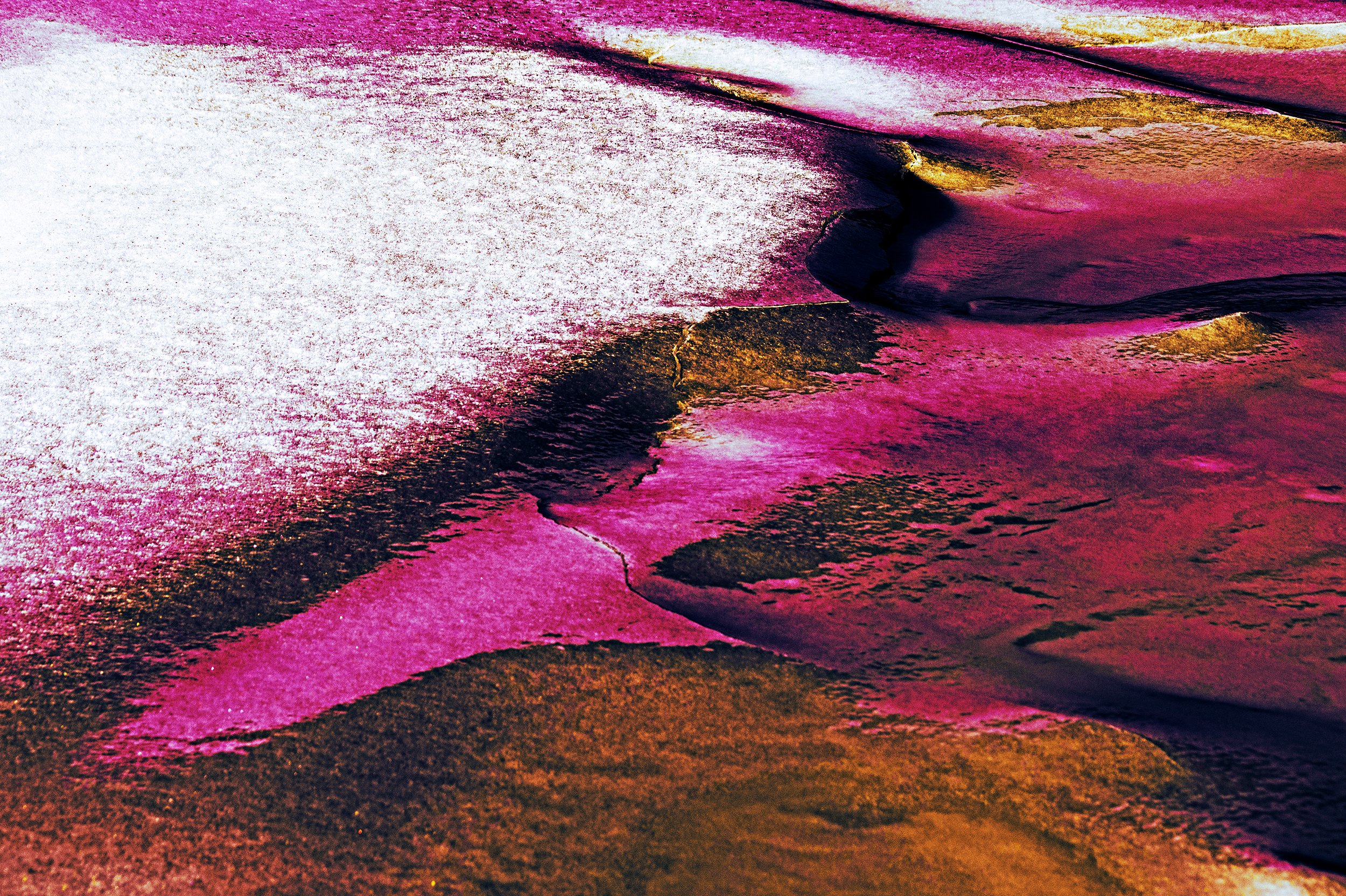 Laramie Greenbelt Trail sloping ice melting atop river water telephoto shot captured outdoors on January 27th 2023 at 3:47 PM during a cold, sunny and windy winter afternoon by Laramie Wyoming photographer Sean Michael Datz using a Nikon D850 camera and Sigma 18-300mm telephoto lens at a focal length distance of 78mm.