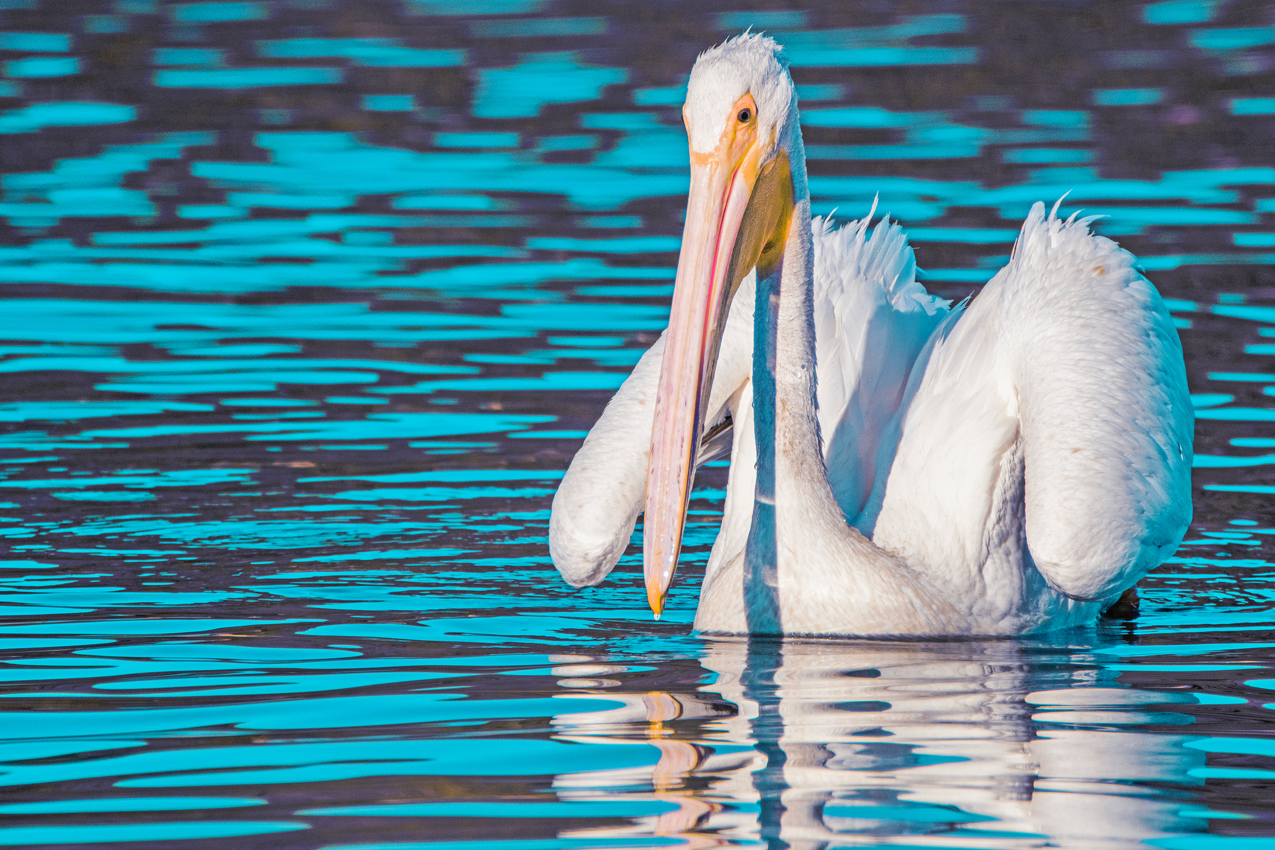 Floating Pelican Reflection Among Lake Water