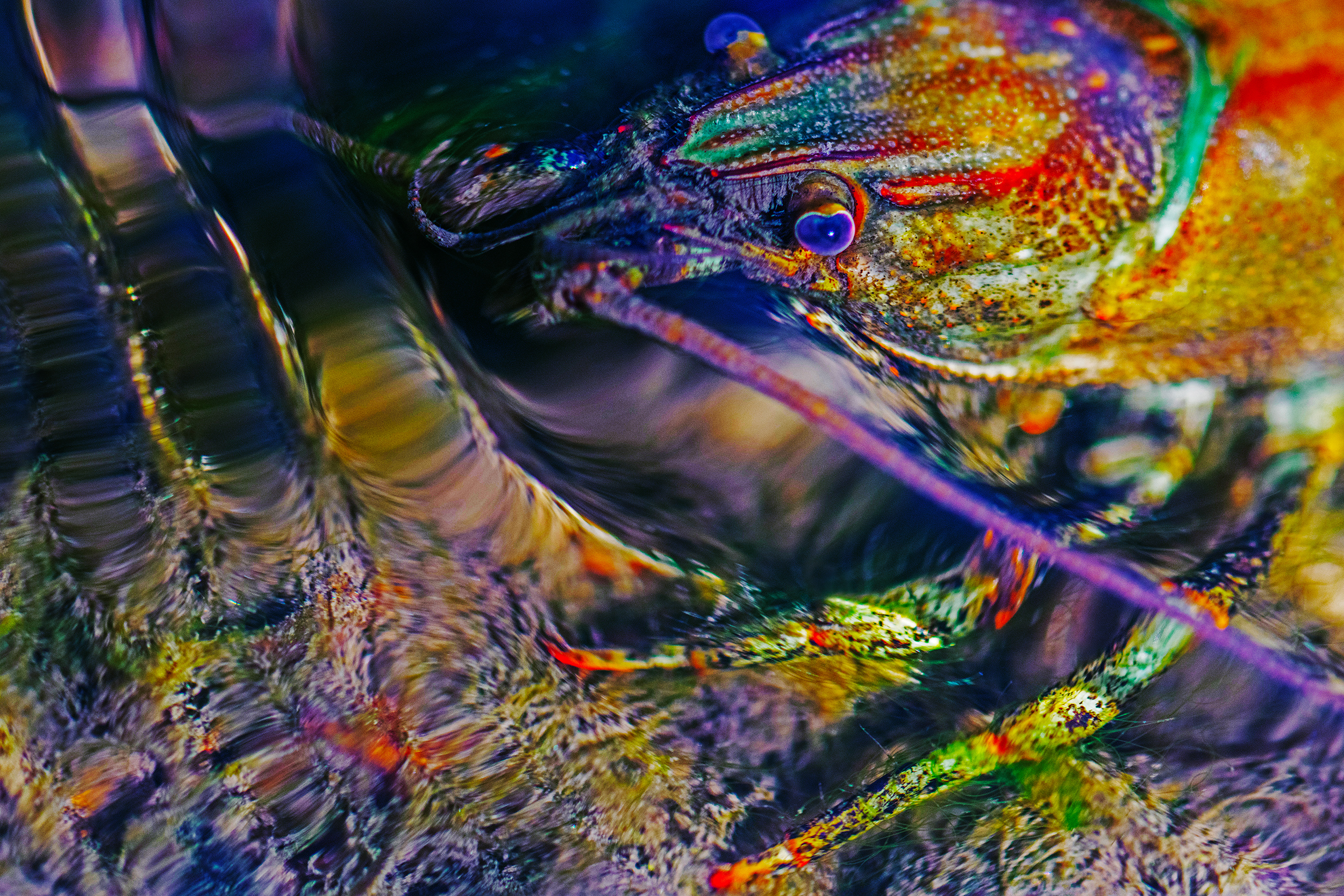 Crayfish Swims Against Rippling Water (Rainbow Tone)