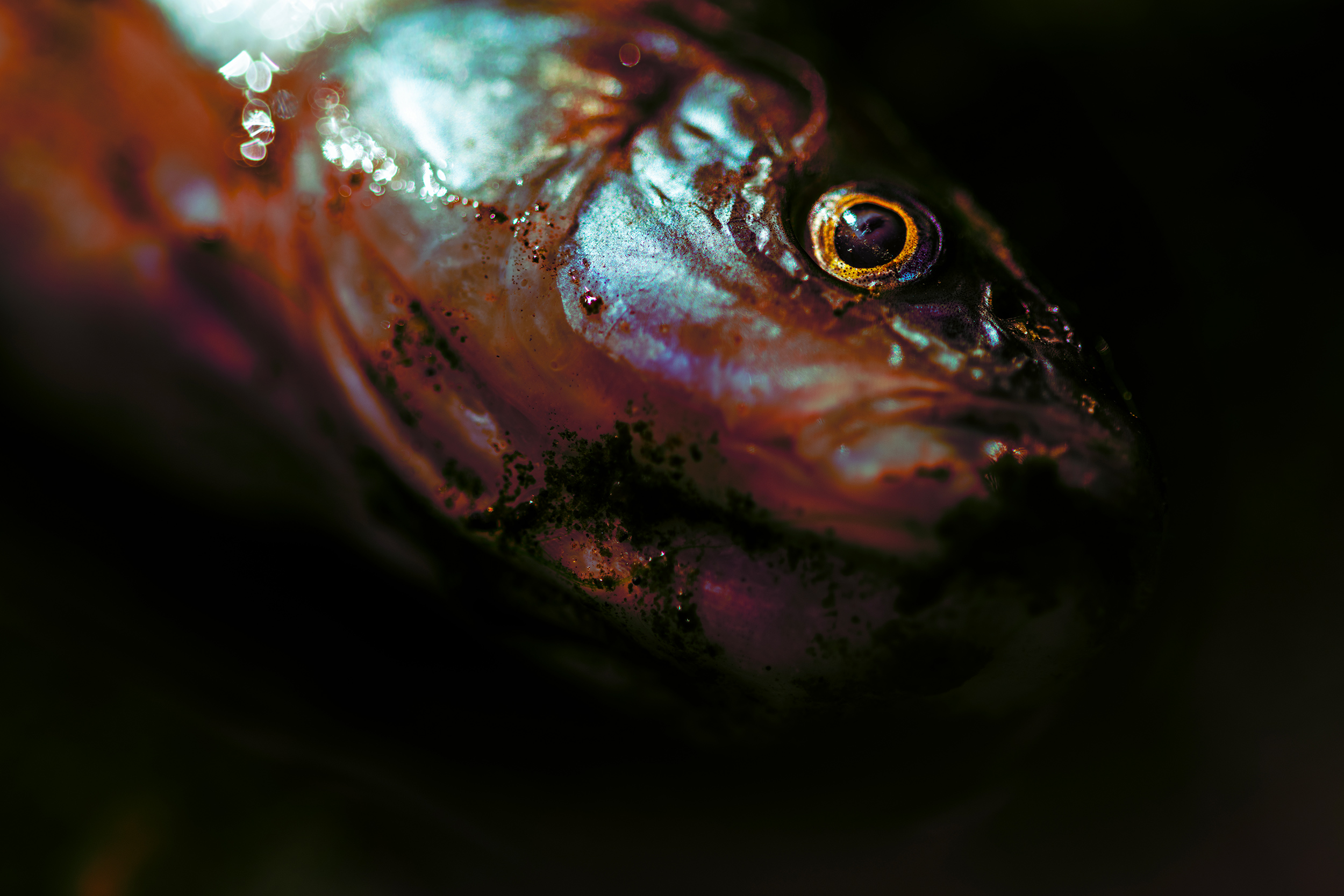 Laramie Greenbelt Trail dead freshwater whitefish washed ashore macro shot captured outdoors on September 28th 2023 at 4:38 PM during a warm, sunny and windy autumn afternoon by Laramie Wyoming photographer Sean Michael Datz using a Nikon D850 camera with Sigma TC-2001 2x Teleconverter and Sigma 105mm macro lens at a focal length distance of 210mm.