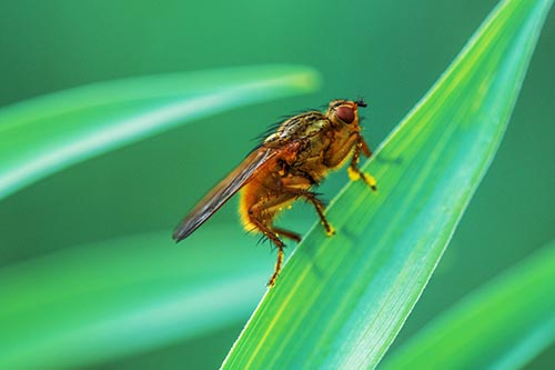 Shadow Casting Cluster Fly Dangles Leg Off Plant Leaf