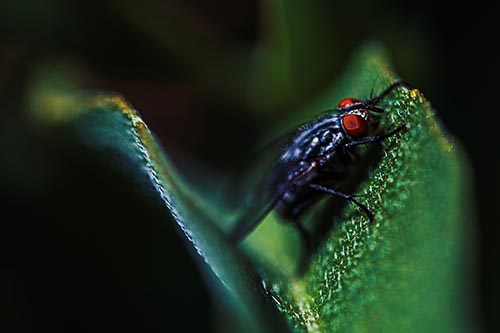 Horizontal Resting Cluster Fly Sitting Atop Leaf Petal